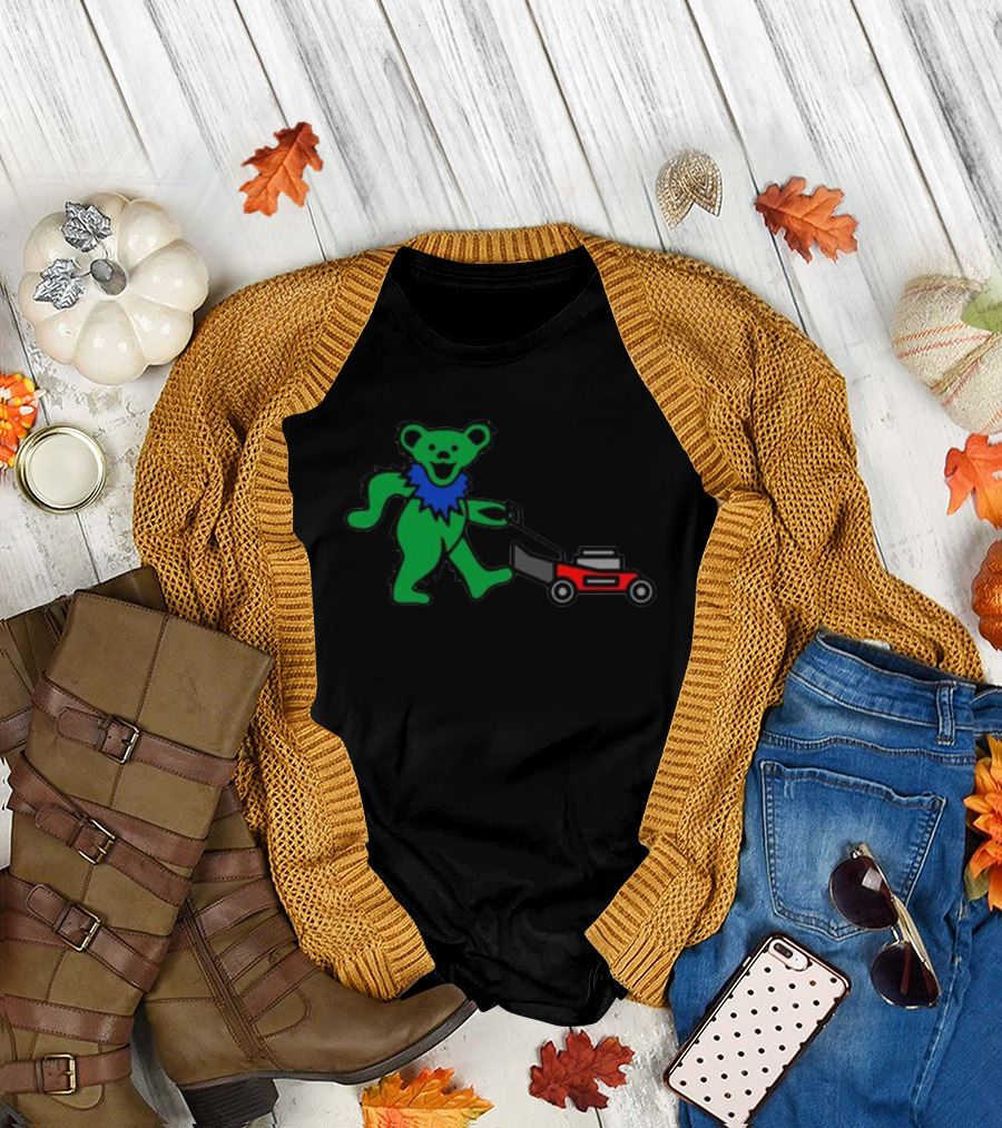 Middleclassfancy Mowing Bear Grateful Dead Dancing Bear Icon With Mower T-Shirt