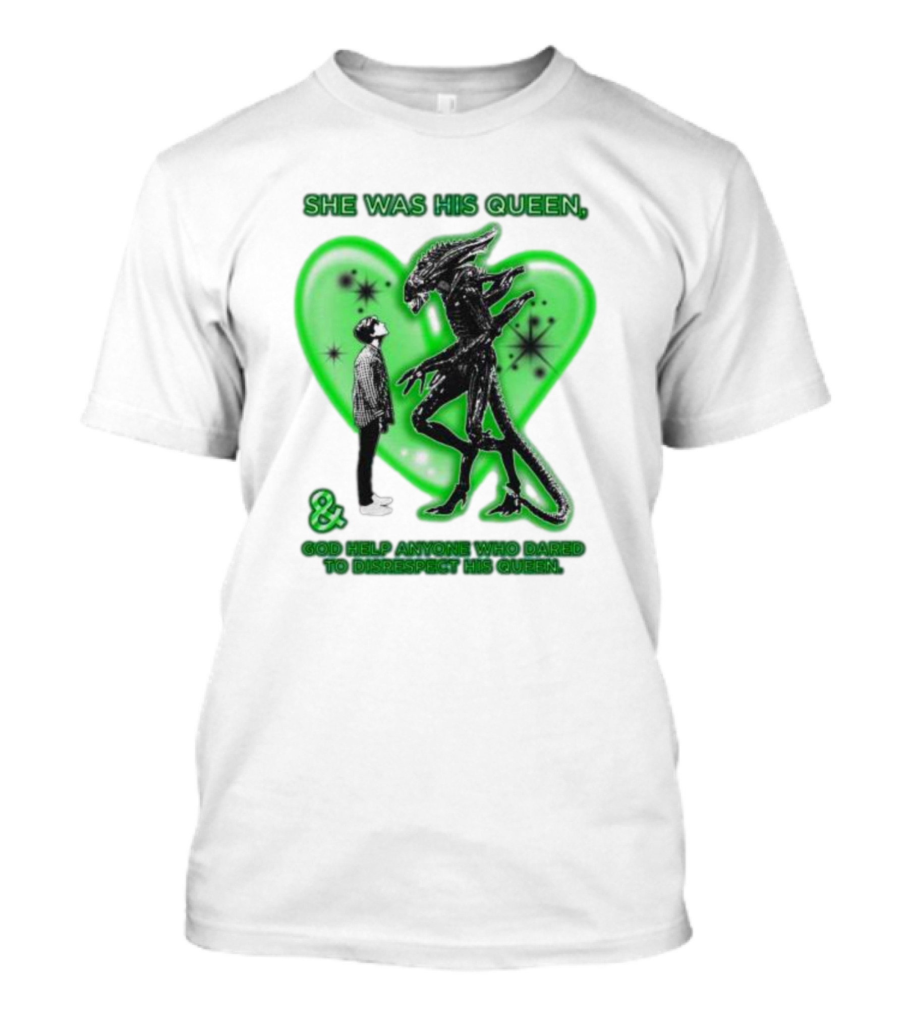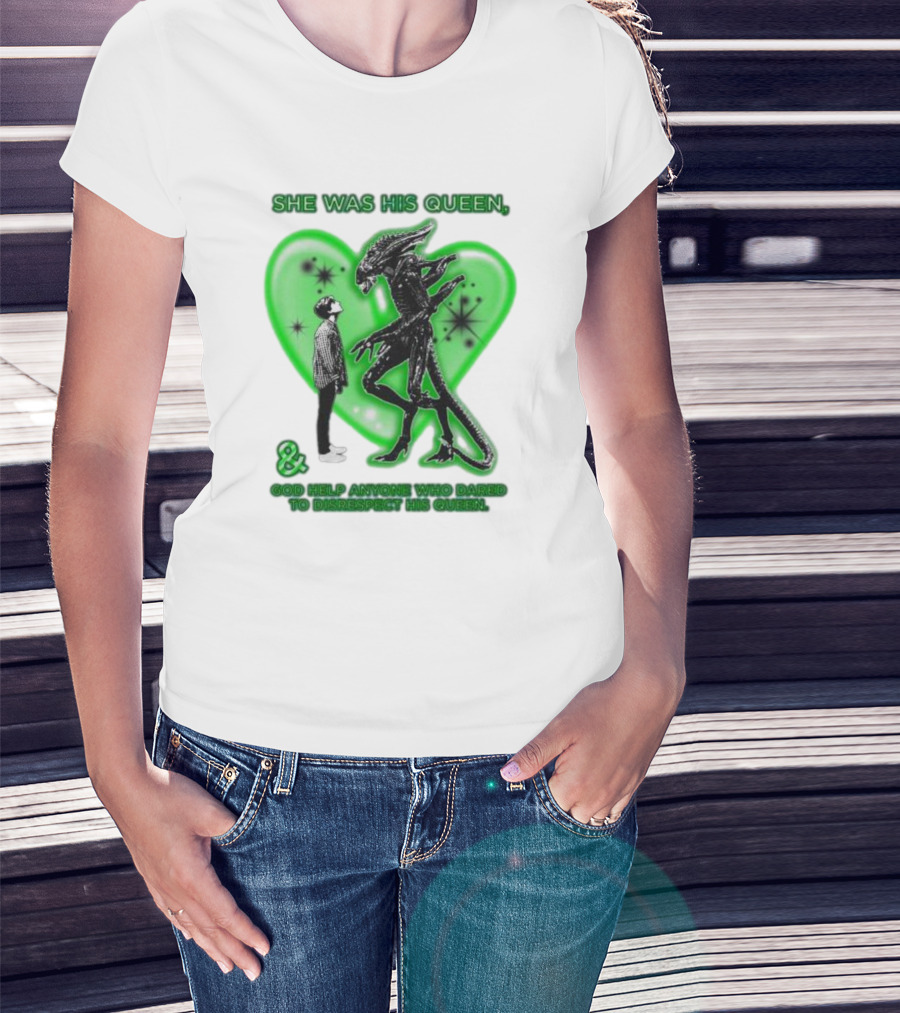 SHE WAS HIS QUEEN GOD HELP ANYONE WHO DARED TO DISRESPECT HIS QUEEN Alien Green Heart T-Shirt