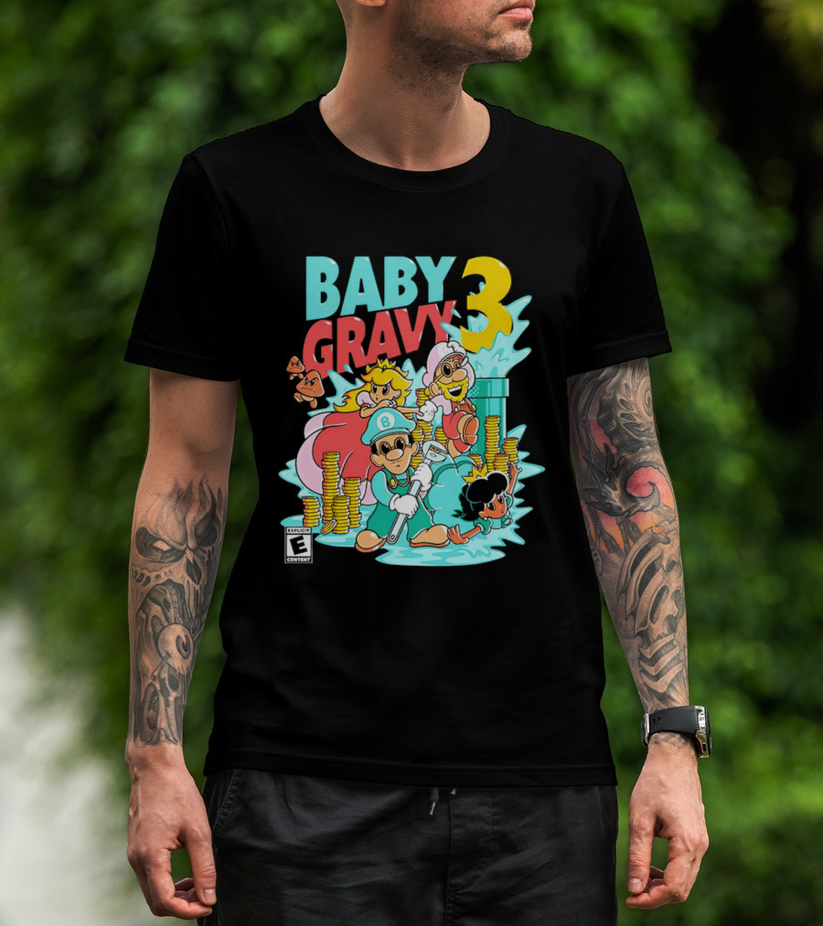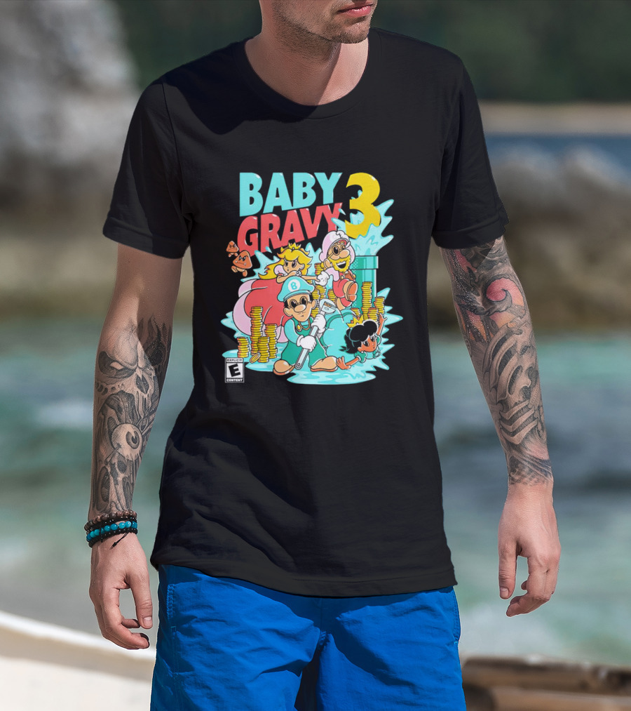 Baby Gravy 3 Bros Funny Mario Parody Explicit Content T-Shirt