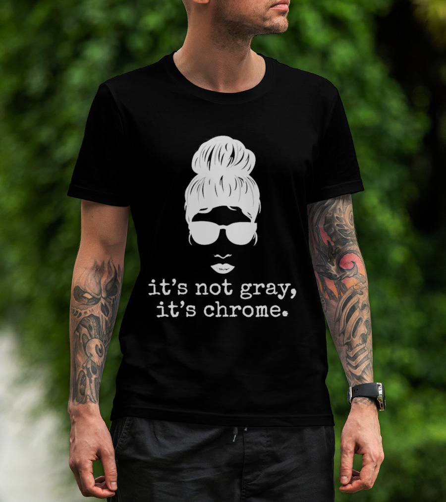 The it’s not gray it’s chrome sunglasses bun hairstyle T-shirt is designed for everyday wear and a consistent fit. Fabric is pre-shrunk ring-spun cotton with durable stitching. See the size chart below for exact measurements.