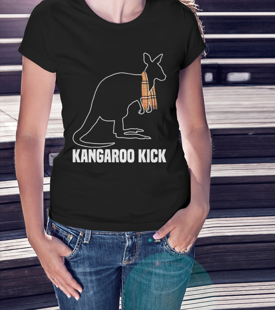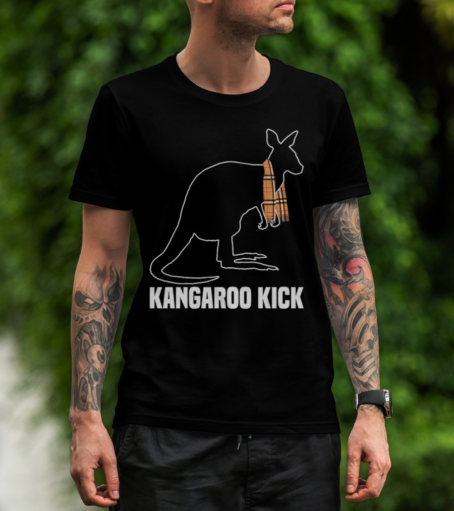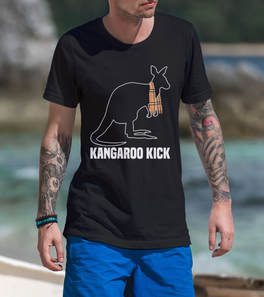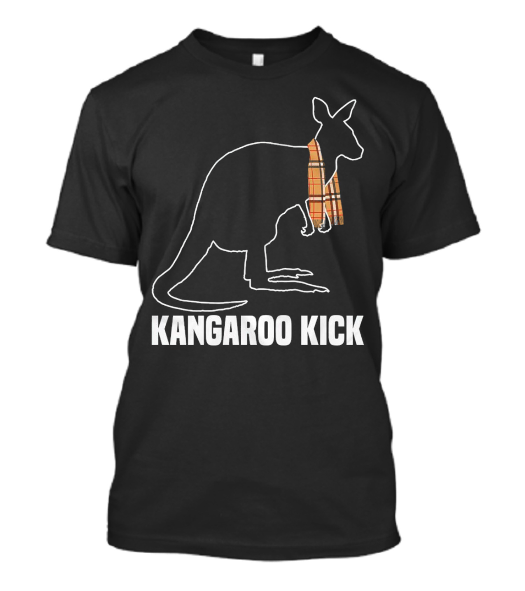 Kangaroo Kick Silhouette With Plaid Scarf T-Shirt