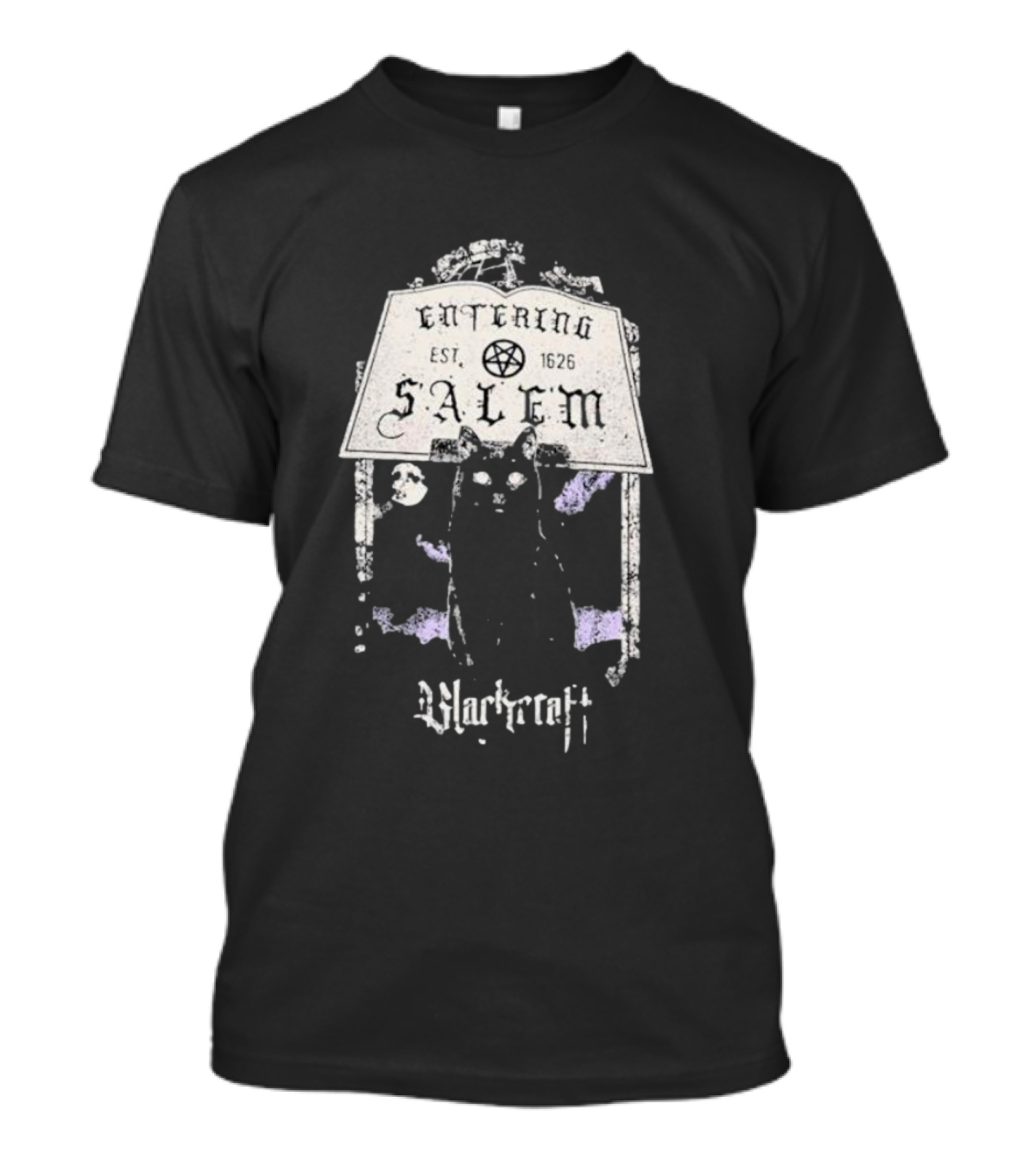Entering Est 1626 Salem Blackcraft Cult Black Cat And Pentagram T-Shirt