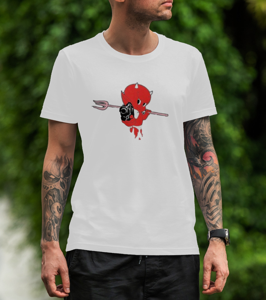 Holy Mountain Printing Sunami Lil’ Devil Red Cartoon With Pitchfork And Bomb T-Shirt