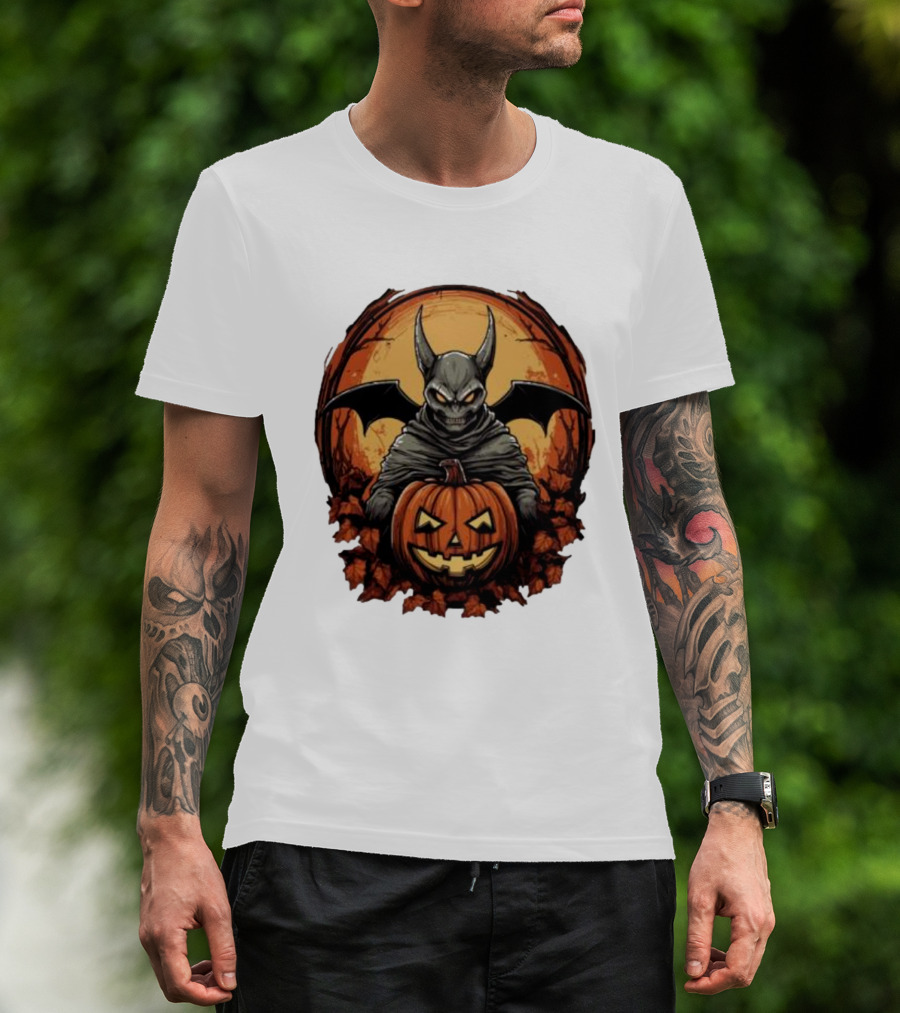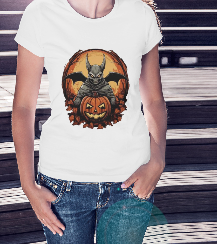 Bat Devil Pumpkin Halloween Moon Shadows T-Shirt