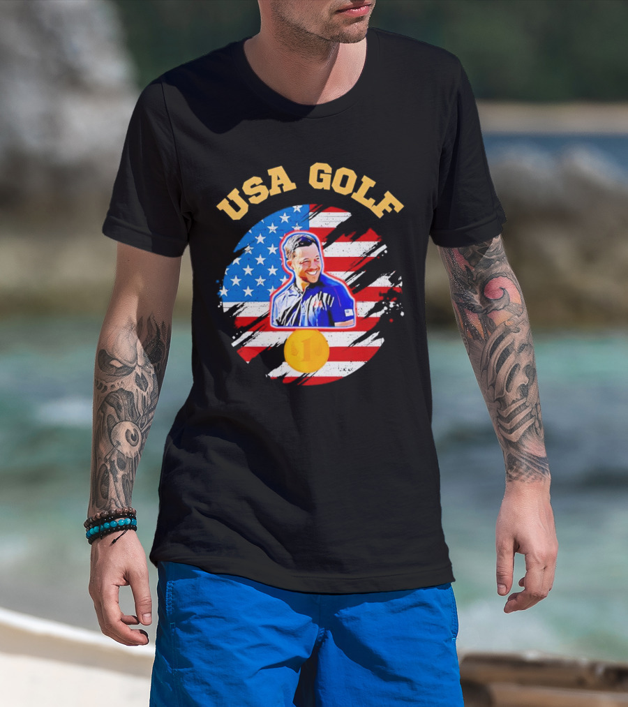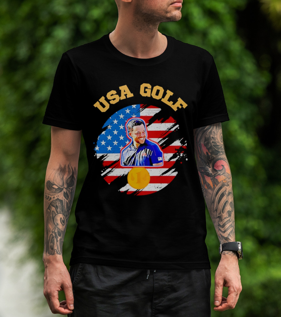 USA Golf Xander Schauffele USA Flag Gold Medal T-Shirt