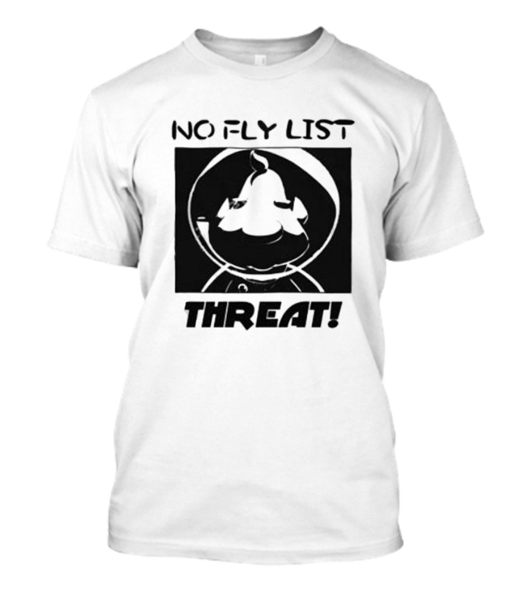 The No Fly List Threat Astronaut Bird T-shirt is designed for everyday wear and a consistent fit. Fabric is pre-shrunk ring-spun cotton with durable stitching. See the size chart below for exact measurements.