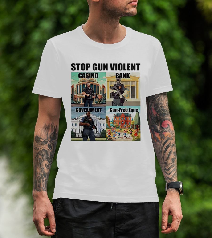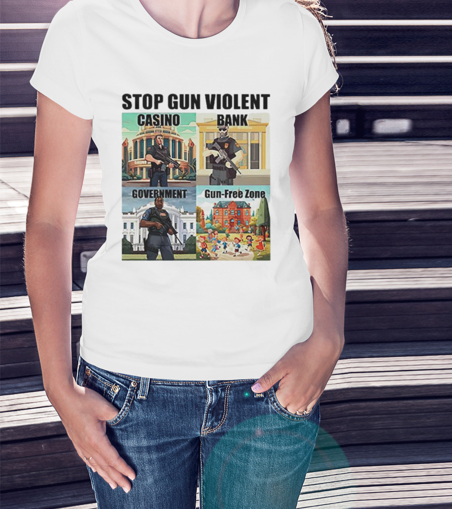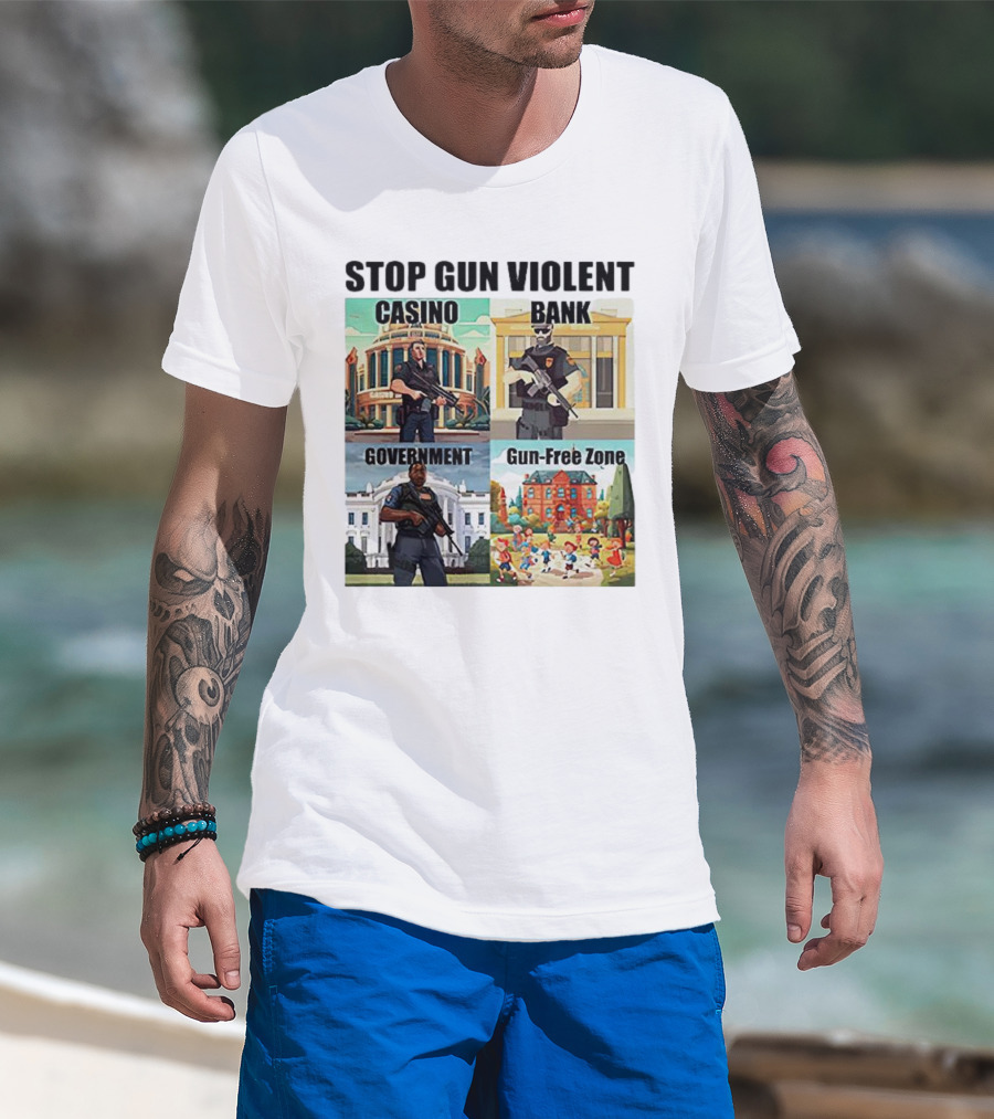 Stop Gun Violent Casino Bank Government Gun-Free Zone T-Shirt