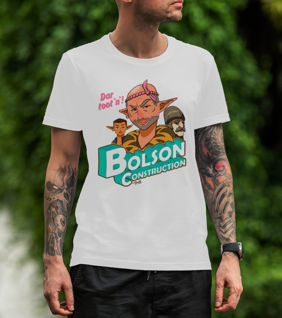 The Bolson Construction Dar Root'n T-shirt is designed for everyday wear and a consistent fit. Fabric is pre-shrunk ring-spun cotton with durable stitching. See the size chart below for exact measurements.