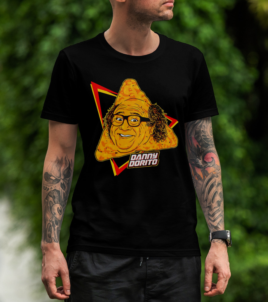 The Danny Dorito Cheese Chip Face T-shirt is designed for everyday wear and a consistent fit. Fabric is pre-shrunk ring-spun cotton with durable stitching. See the size chart below for exact measurements.