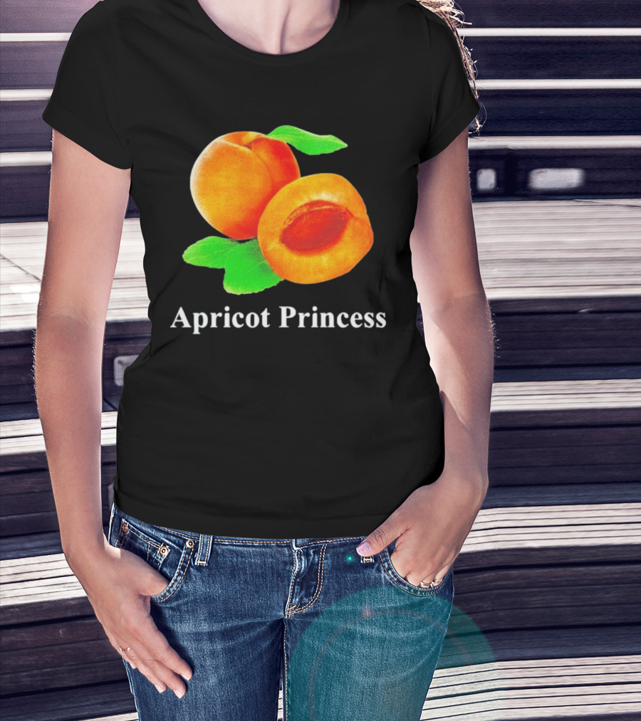 Apricot Princess Fruit Illustration With Leaf Detailing T-Shirt