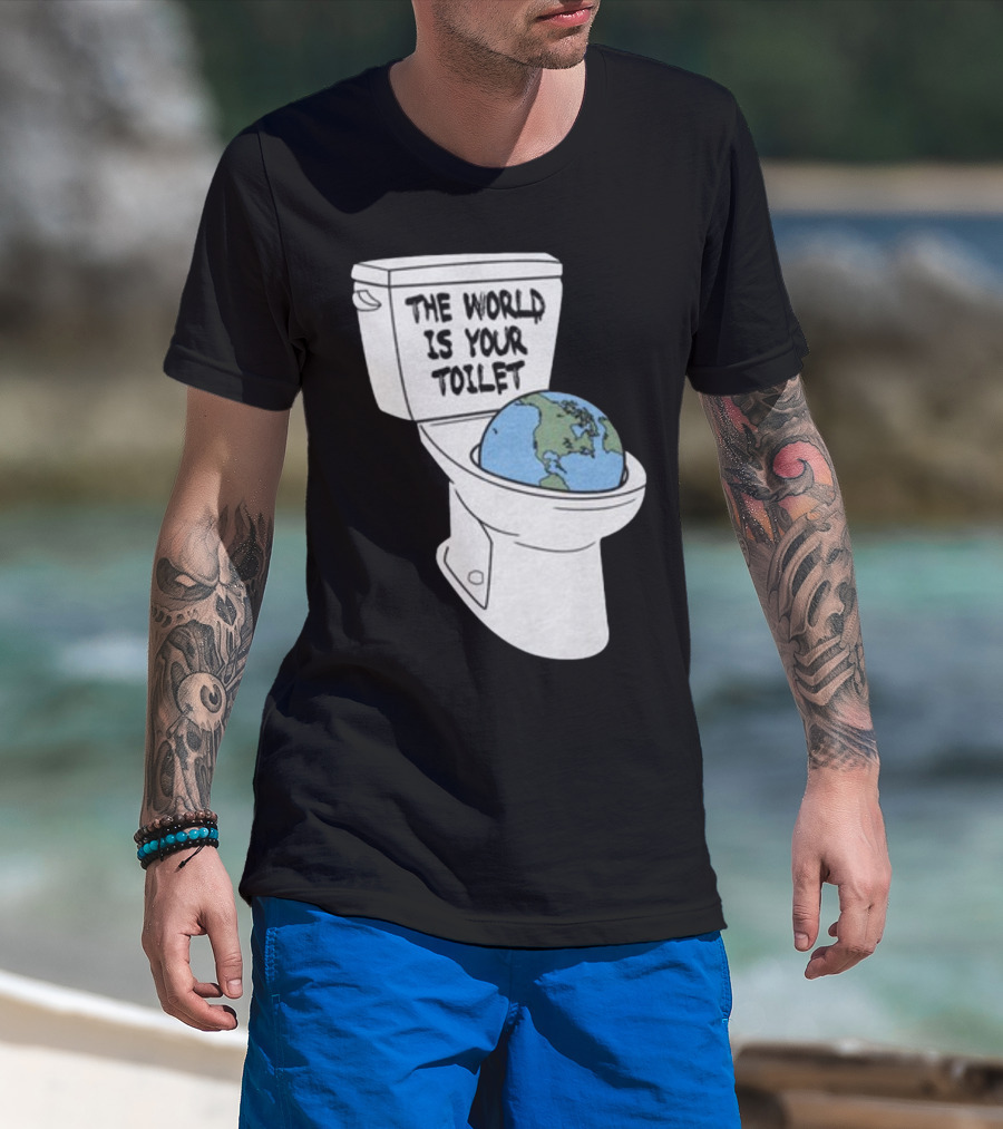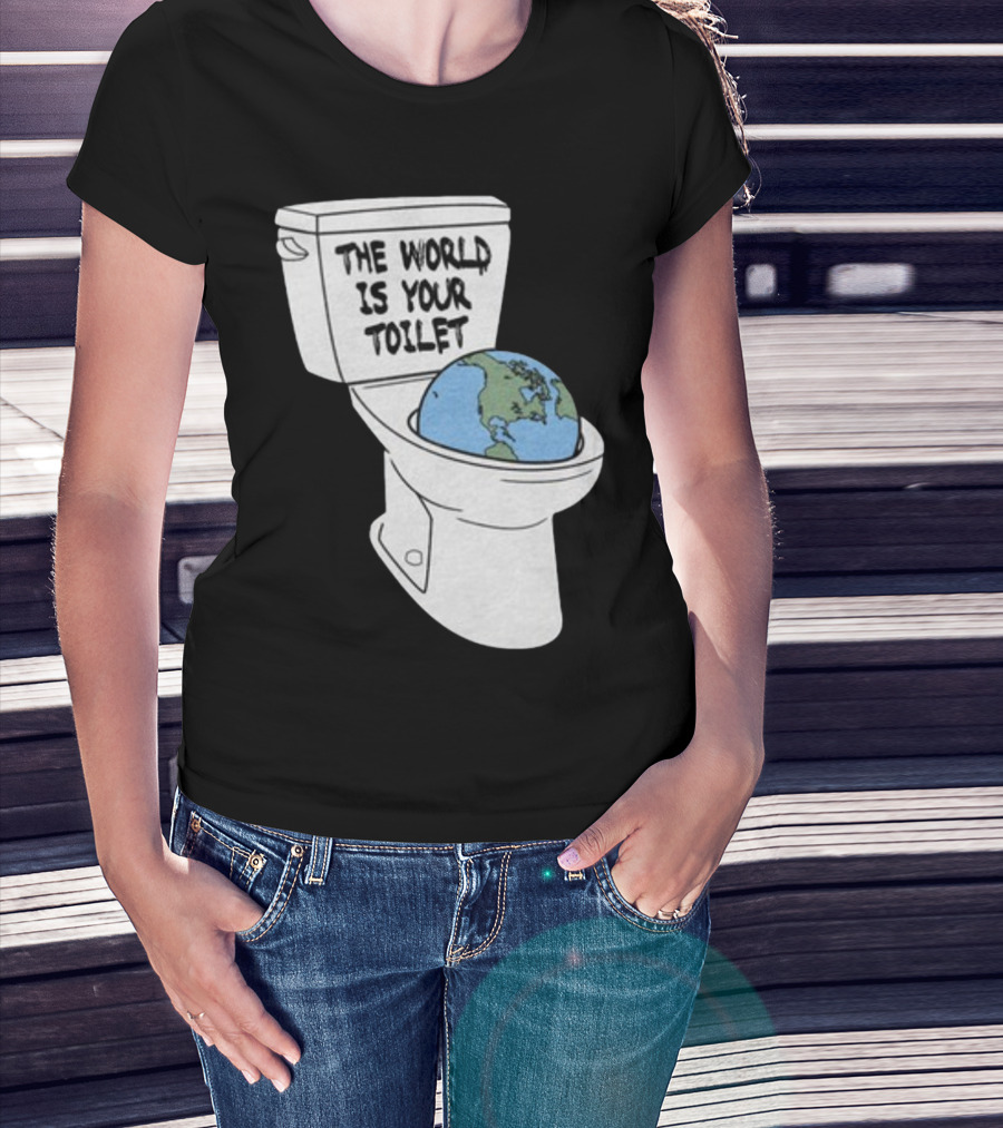 Shitheadsteve Store The World Is Your Toilet Earth In Toilet Bowl T-Shirt