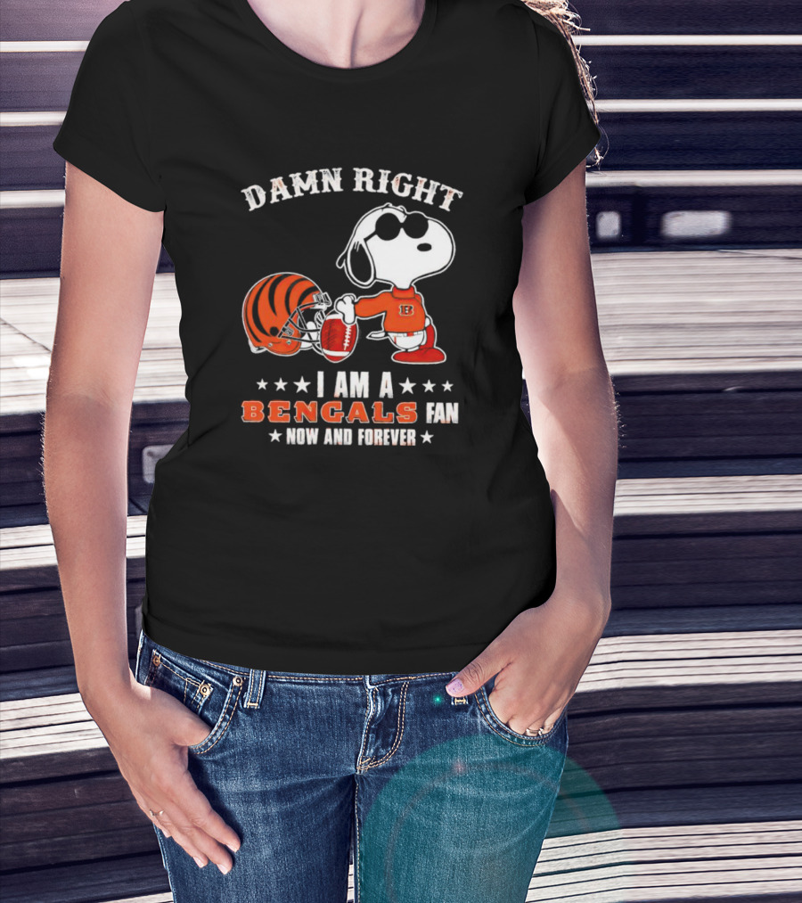 Damn Right I Am A Bengals Fan Now And Forever Snoopy Football Bengals T-Shirt
