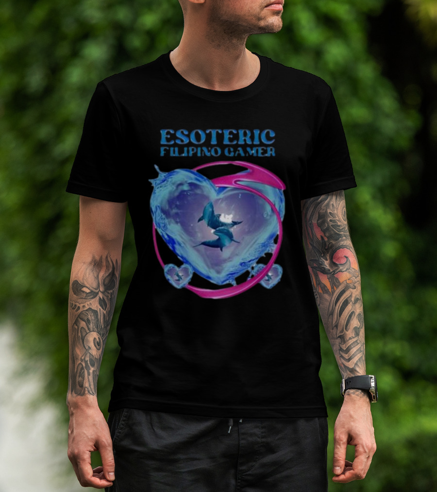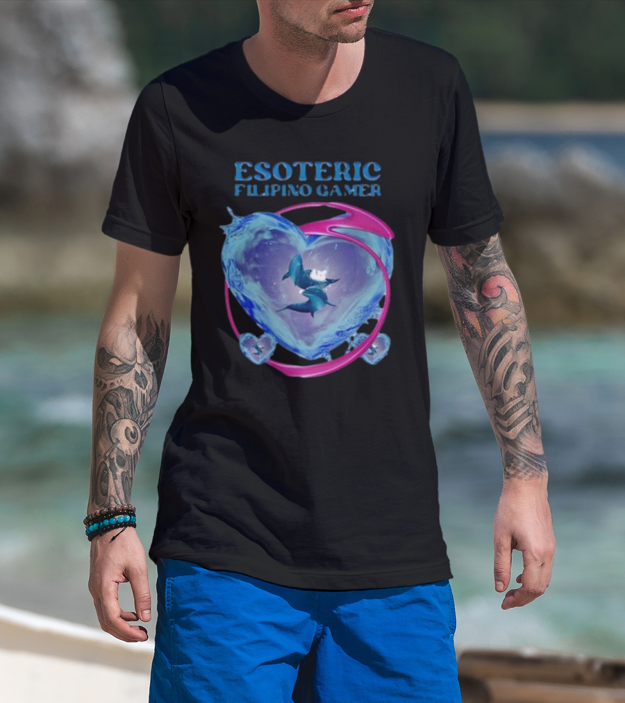 ESOTERIC FILIPINO GAMER Heart With Dolphins In Oceanic Sphere T-Shirt