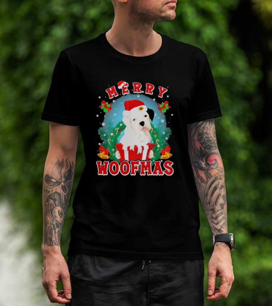 Boxer Puppy Merry Woofmas With Santa Hat And Gift T-Shirt