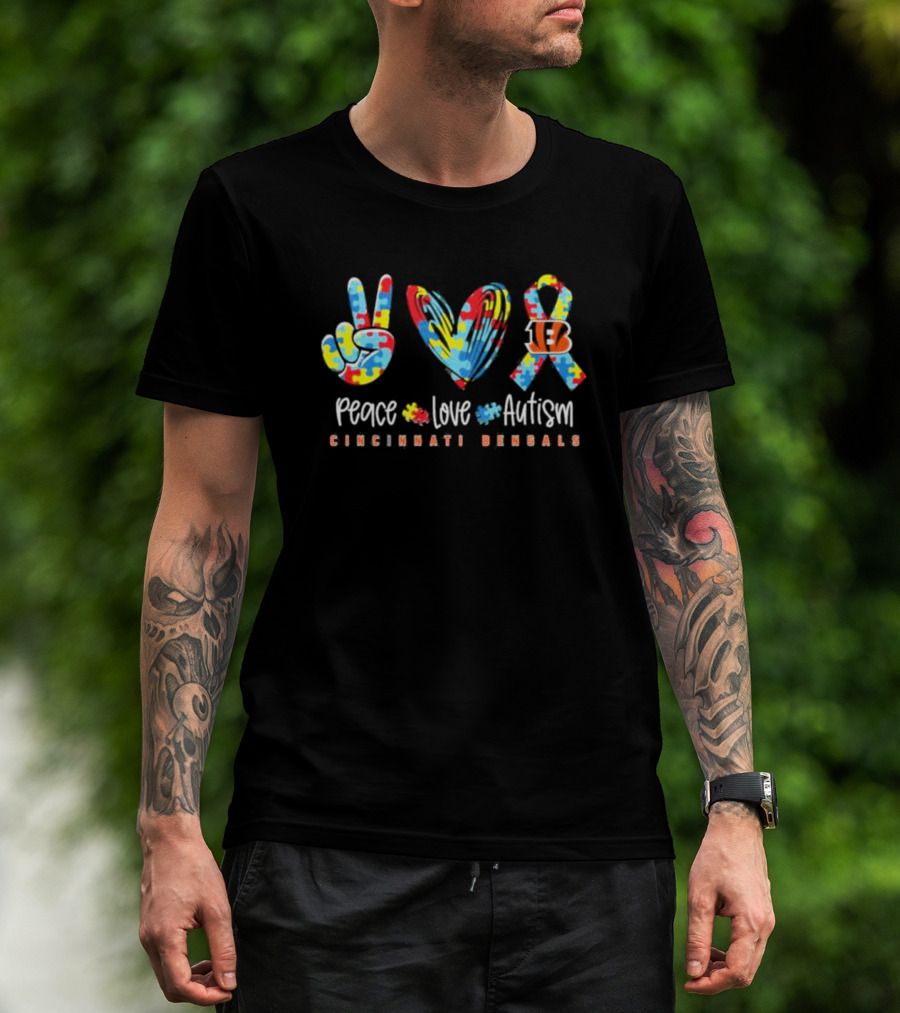 Peace Love Autism Cincinnati Bengals NFL Puzzle T-Shirt