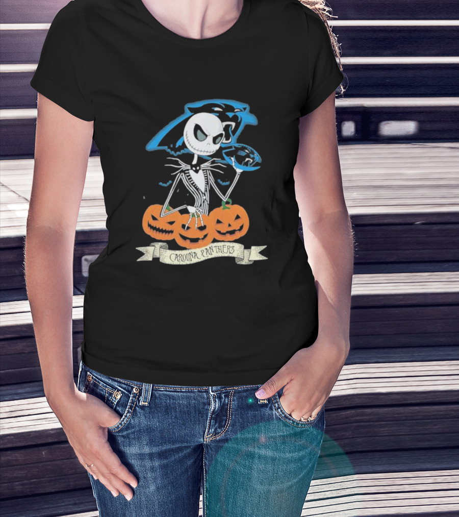 NFL Carolina Panthers Jack Skellington Halloween Football Pumpkins T-Shirt