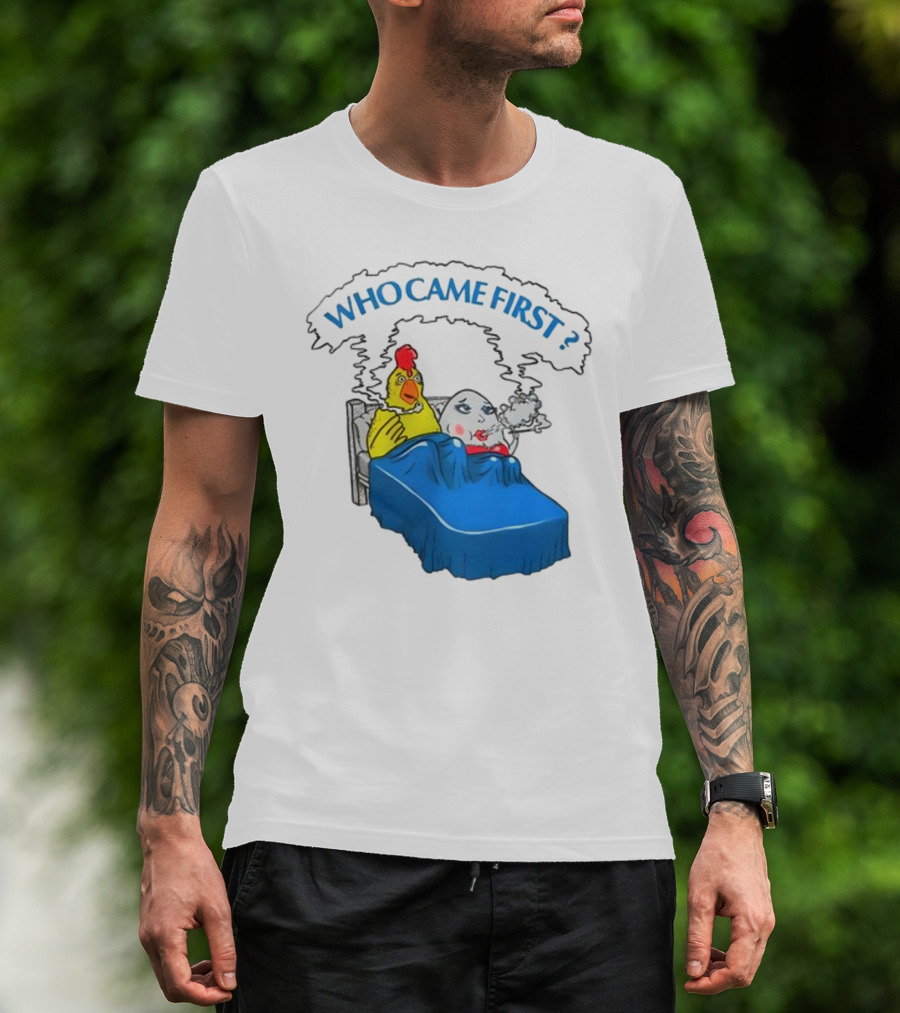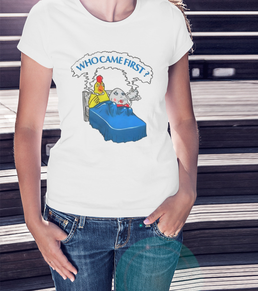 WHO CAME FIRST Chicken And Egg Joke T-Shirt
