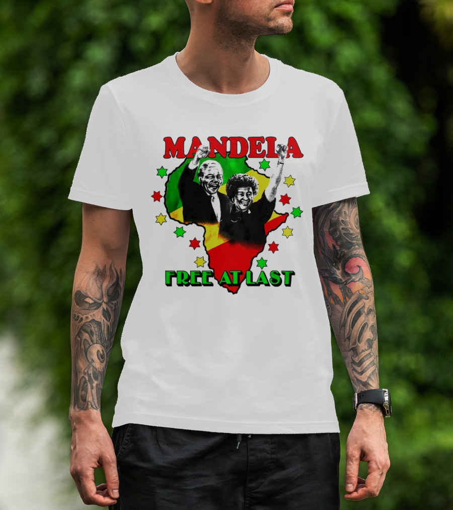 Mandela Free At Last Africa Map Red Yellow Green Stars T-Shirt