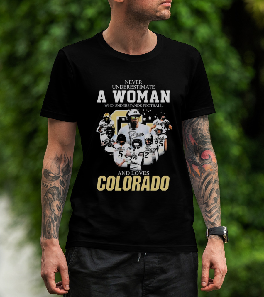 Never Underestimate A Woman Who Understands Football And Loves Colorado Buffaloes Players T-Shirt