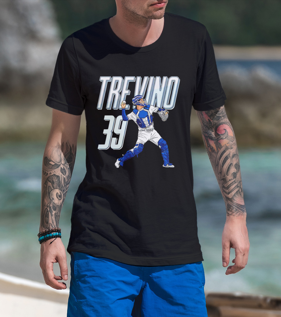The Trevino 39 New York Yankees Catcher T-shirt is designed for everyday wear and a consistent fit. Fabric is pre-shrunk ring-spun cotton with durable stitching. See the size chart below for exact measurements.