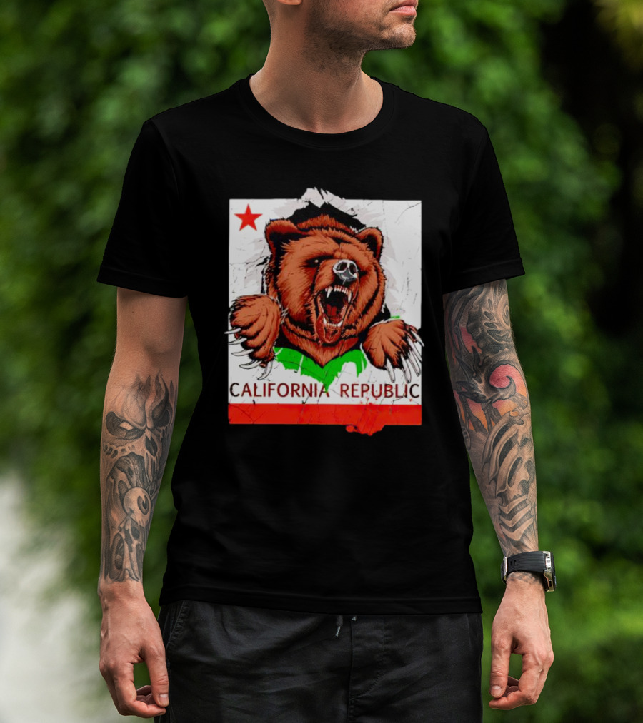 California Republic Bear Roaring Star Red Stripe T-Shirt