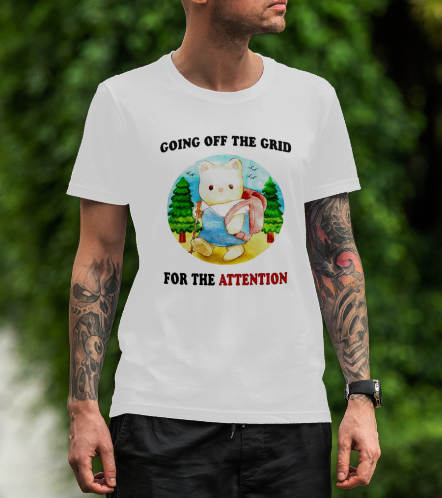 Going Off The Grid For The Attention Bear With Backpack In Forest T-Shirt
