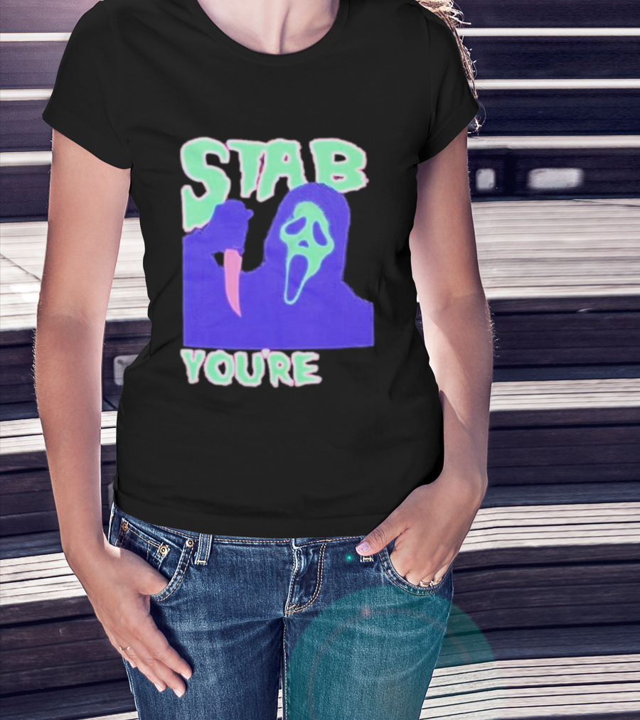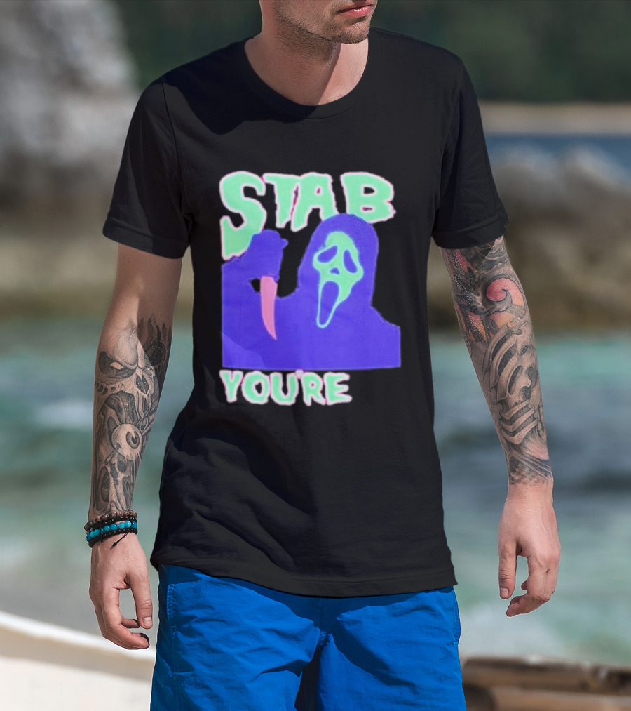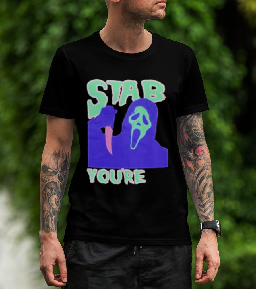 Stab You’re It Neon Horror Mask T-Shirt