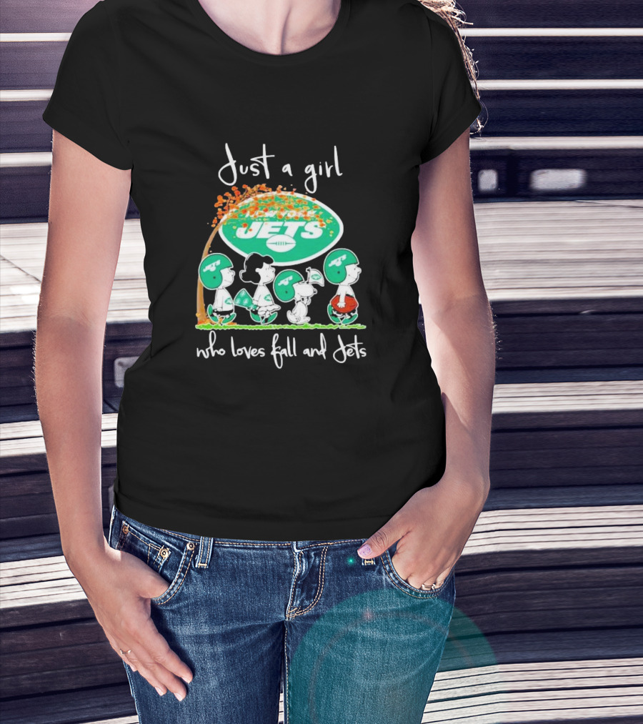 Just A Girl Who Loves Fall And New York Jets Football With Peanut Friend T-Shirt
