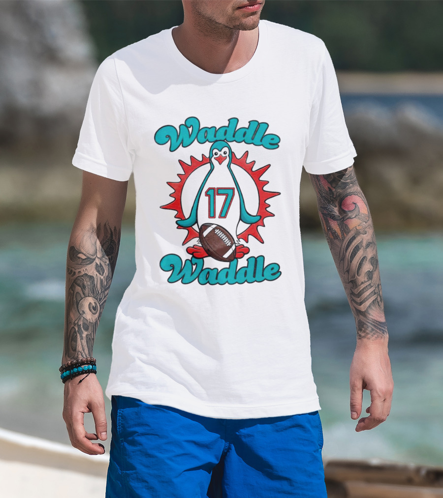 Waddle Waddle 17 Miami Dolphin Football Penguin T-Shirt