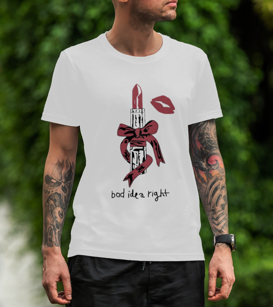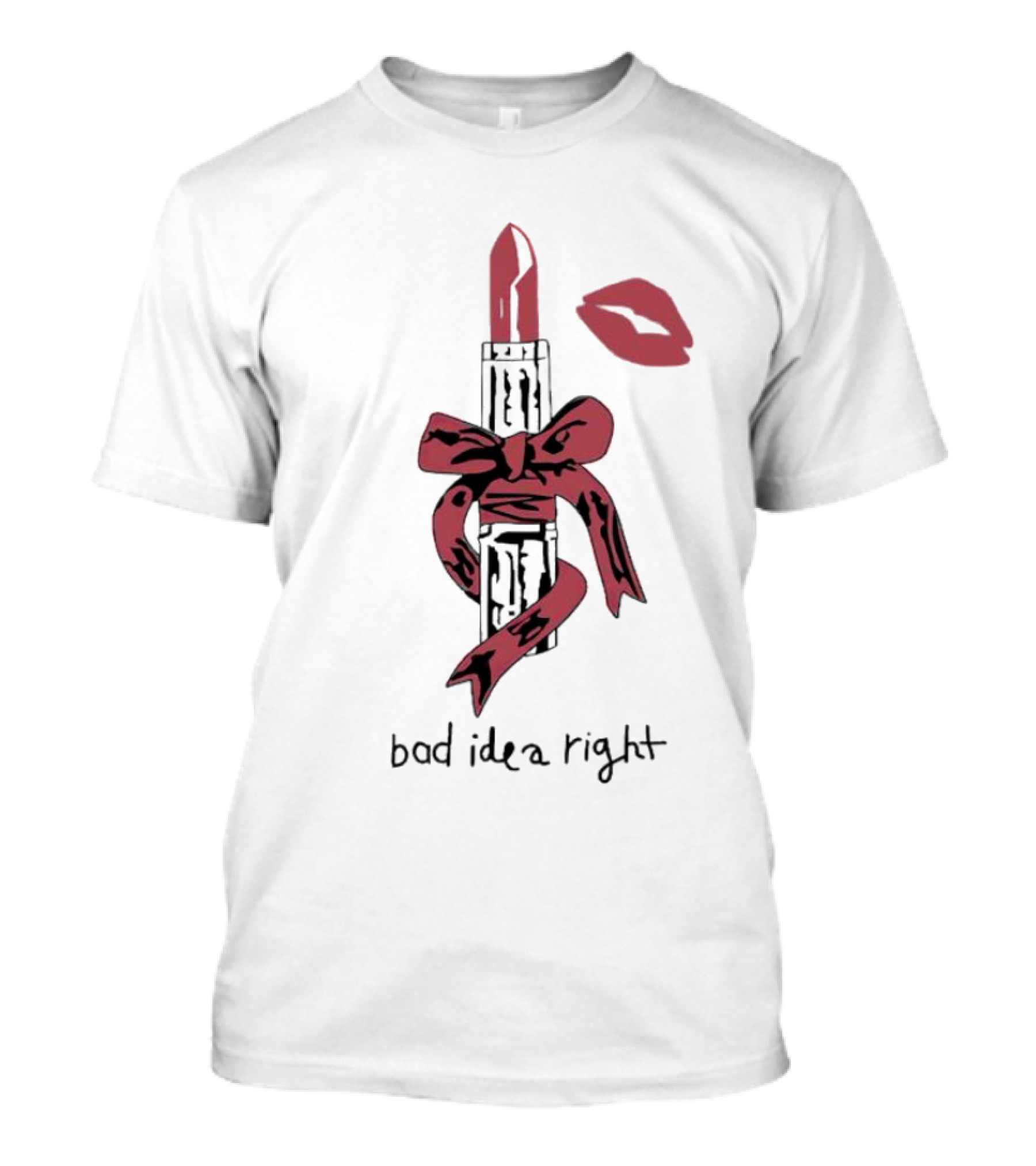 The Lipstick Wrapped with Bow Bad Idea Right T-shirt is designed for everyday wear and a consistent fit. Fabric is pre-shrunk ring-spun cotton with durable stitching. See the size chart below for exact measurements.