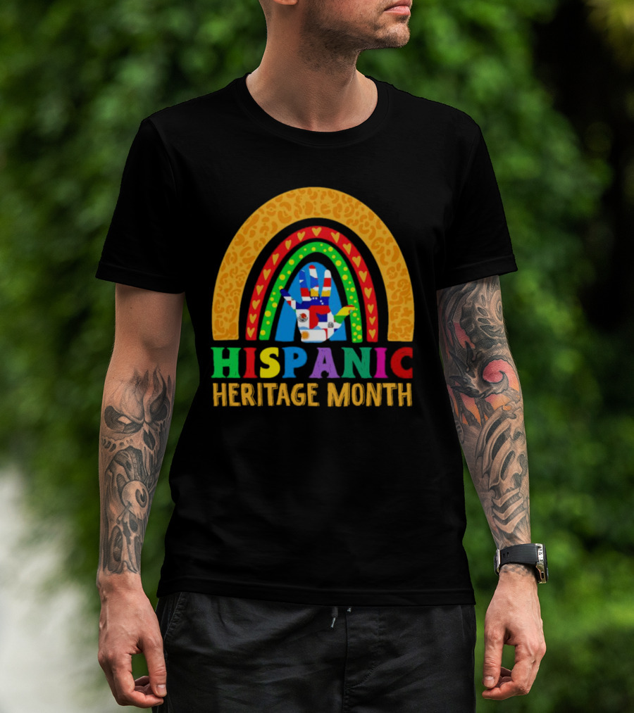 Hispanic Heritage Month Rainbow With Flag Mosaic Hand T-Shirt