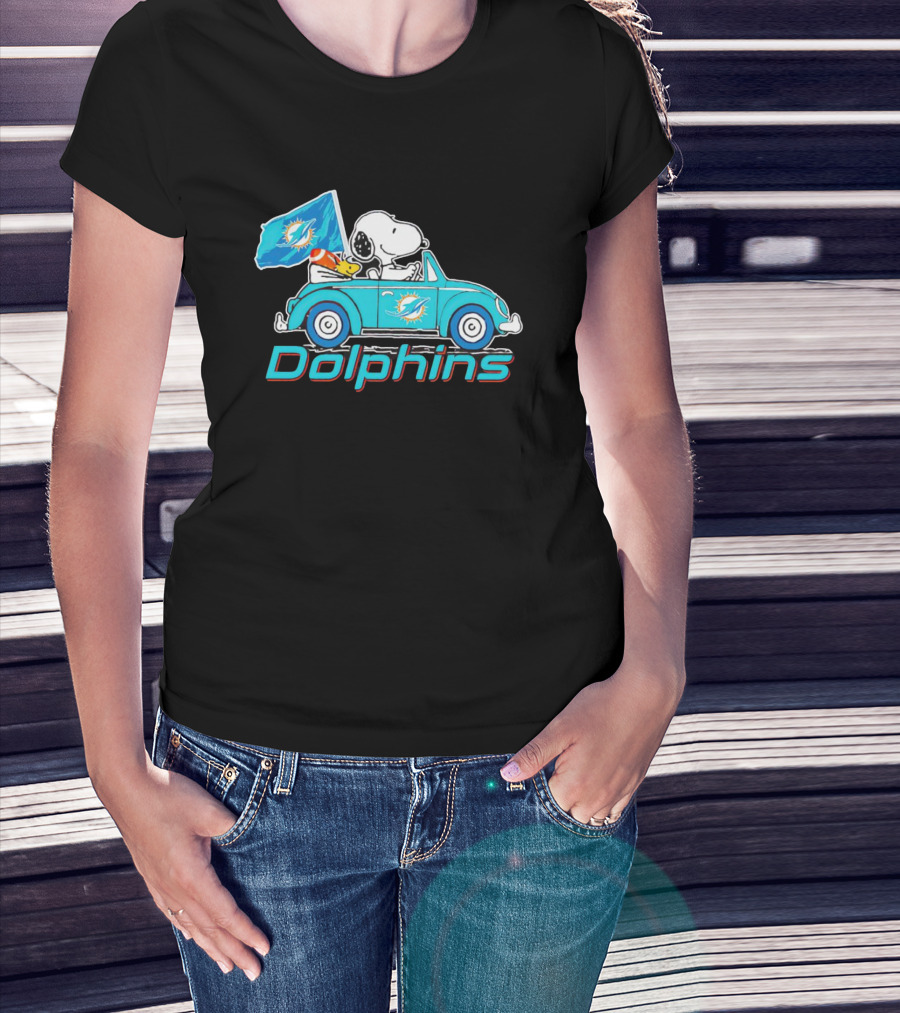 The Snoopy and Woodstock Driving Car Miami Dolphins Flag T-shirt is designed for everyday wear and a consistent fit. Fabric is pre-shrunk ring-spun cotton with durable stitching. See the size chart below for exact measurements.