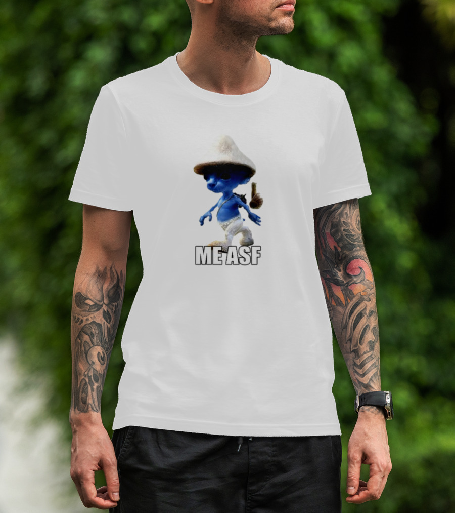 Goofyahhtees Smurf Me Asf Blue Mushroom Character T-Shirt