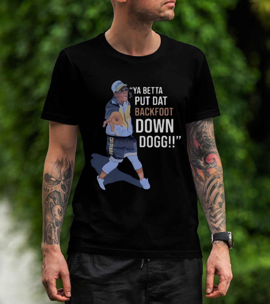 Ya Betta Put Dat Backfoot Down Dogg Comedic Sports Coach T-Shirt