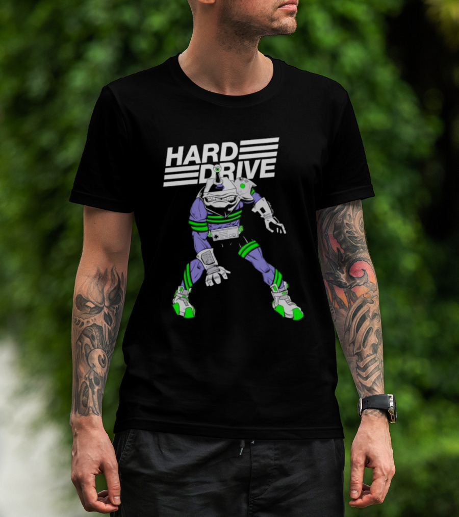 HARD DRIVE Futuristic Cyborg With Green And Purple Accents T-Shirt