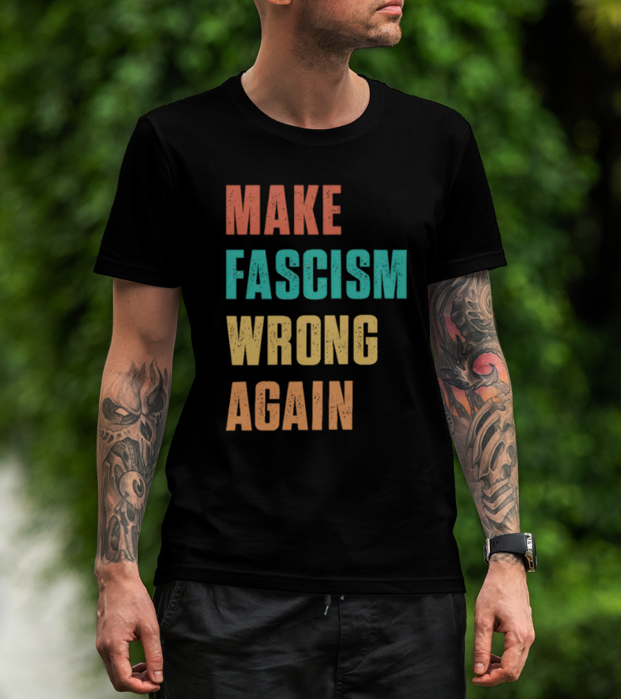 The Make Fascism Wrong Again T-shirt is designed for everyday wear and a consistent fit. Fabric is pre-shrunk ring-spun cotton with durable stitching. See the size chart below for exact measurements.