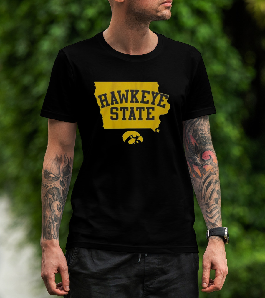 The Hawkeye State Iowa Football T-shirt is designed for everyday wear and a consistent fit. Fabric is pre-shrunk ring-spun cotton with durable stitching. See the size chart below for exact measurements.