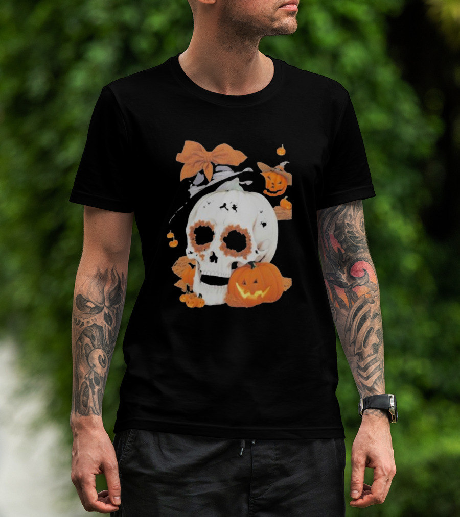 The Witch's Skull Pumpkin Halloween Hat And Laughing Jack-O'-Lanterns T-Shirt