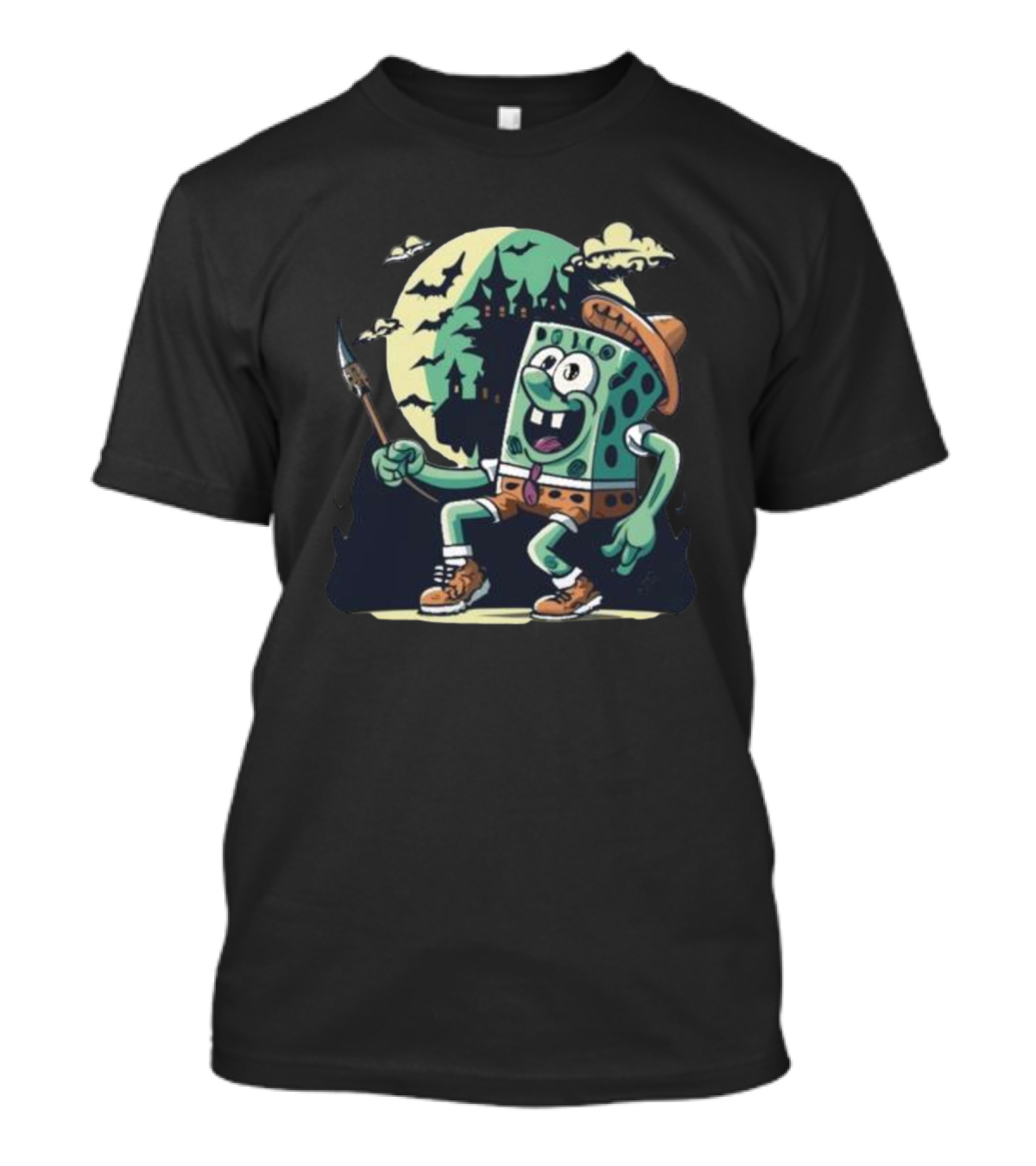 The SpongeBob SquarePants Halloween Cowboy Spooky Night with Full Moon and Bats T-shirt is designed for everyday wear and a consistent fit. Fabric is pre-shrunk ring-spun cotton with durable stitching. See the size chart below for exact measurements.