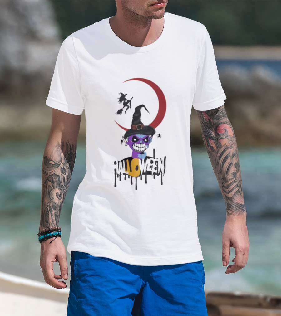 Witch Horror Halloween Blood Moon With Witch Hat And Skull T-Shirt