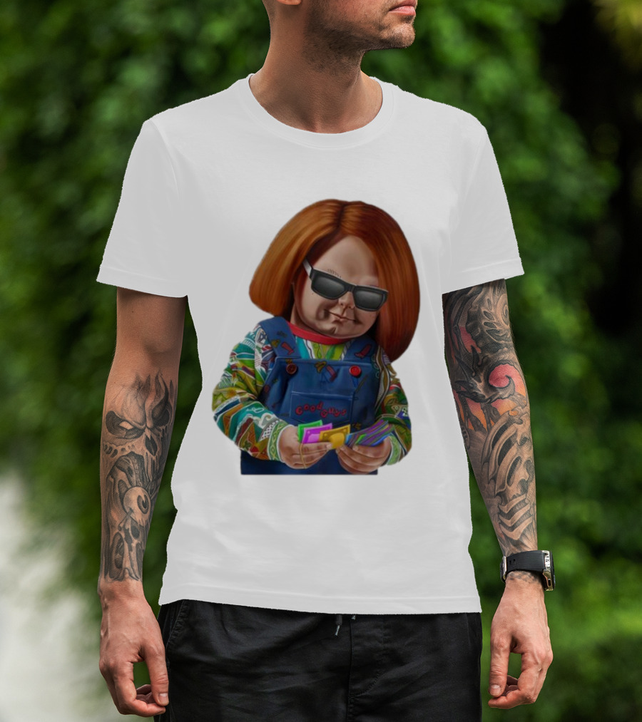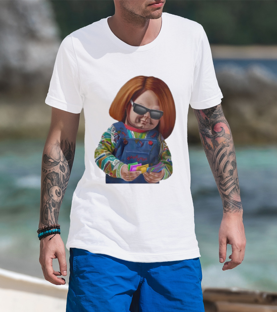 Chucky Good Guys Child’s Play Halloween Icon With Sunglasses And Cards T-Shirt