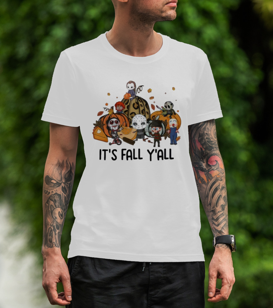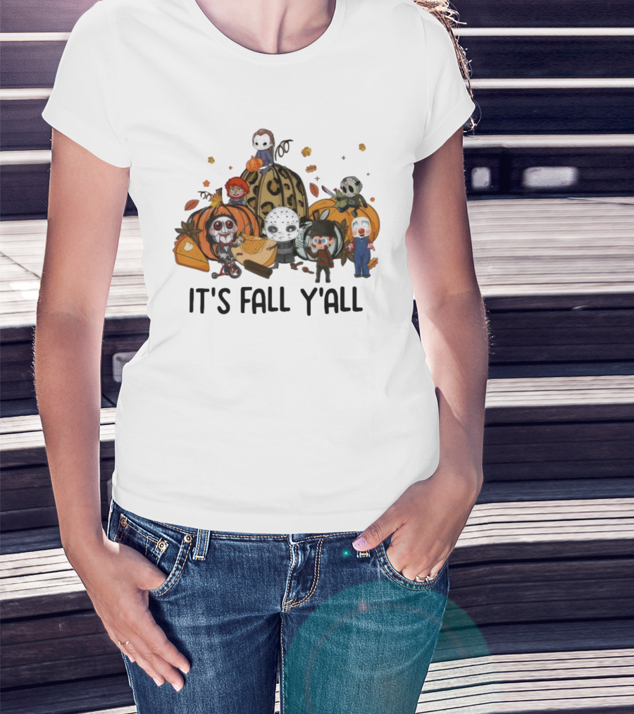 Horror Characters It's Fall Y'all Halloween T-Shirt