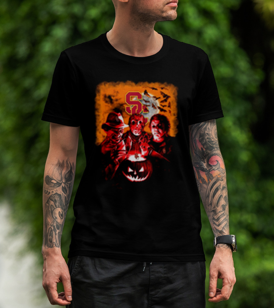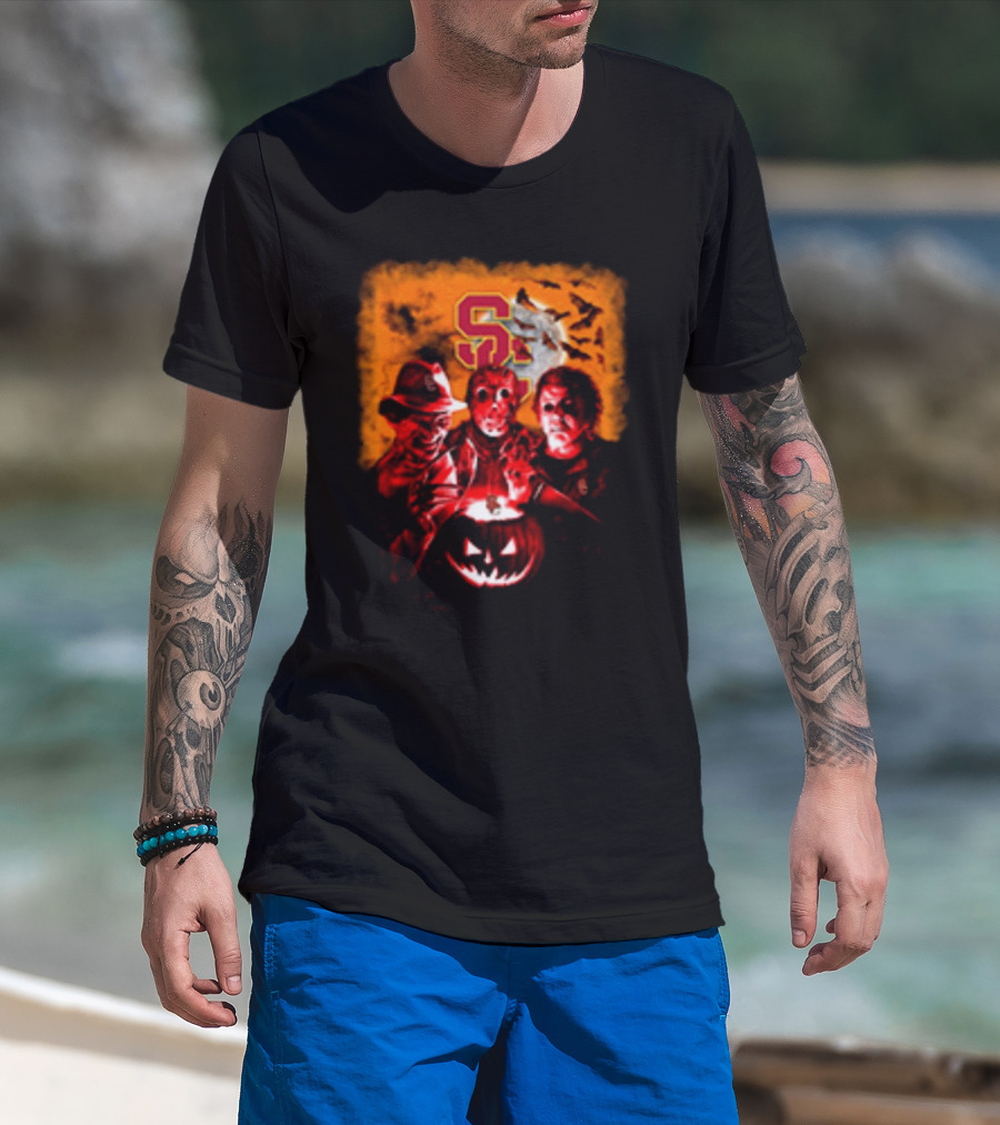 USC Trojans Halloween Freddy Krueger Jason Voorhees Michael Myers Horror Movies T-Shirt