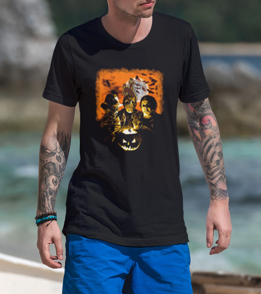 Horror Movies Freddy Krueger Jason Voorhees Michael Myers Halloween Wyoming Cowboys Jack-O'-Lantern Moon Bats T-Shirt