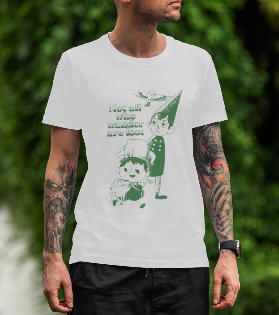The Not All Who Wander Are Lost Over The Garden Wall Characters Frog Bird T-shirt is designed for everyday wear and a consistent fit. Fabric is pre-shrunk ring-spun cotton with durable stitching. See the size chart below for exact measurements.