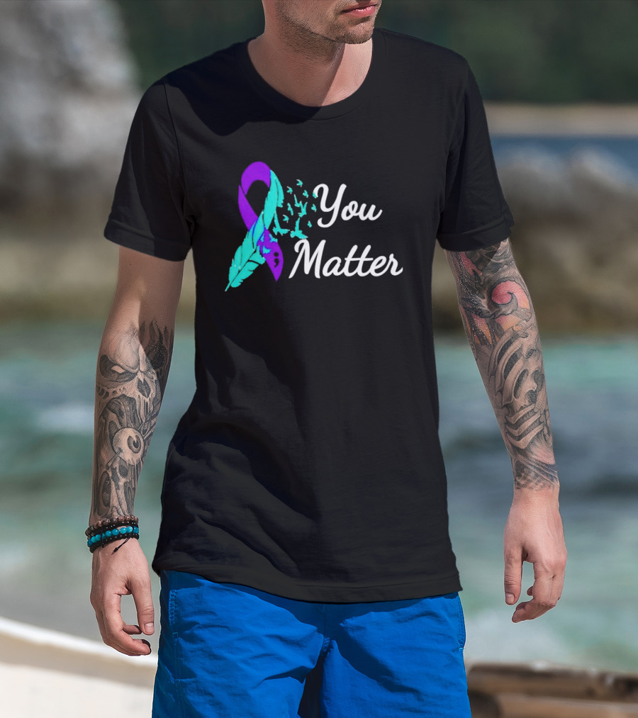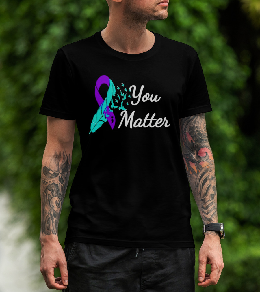 You Matter Suicide Prevention Purple Teal Ribbon Feather And Birds T-Shirt