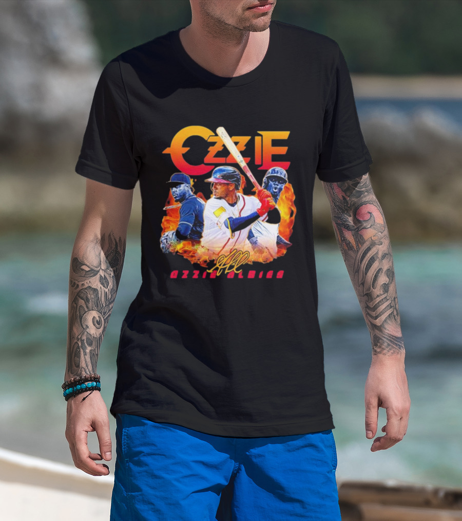 Ozzie Albies MLB Flame Graphic With Signature T-Shirt