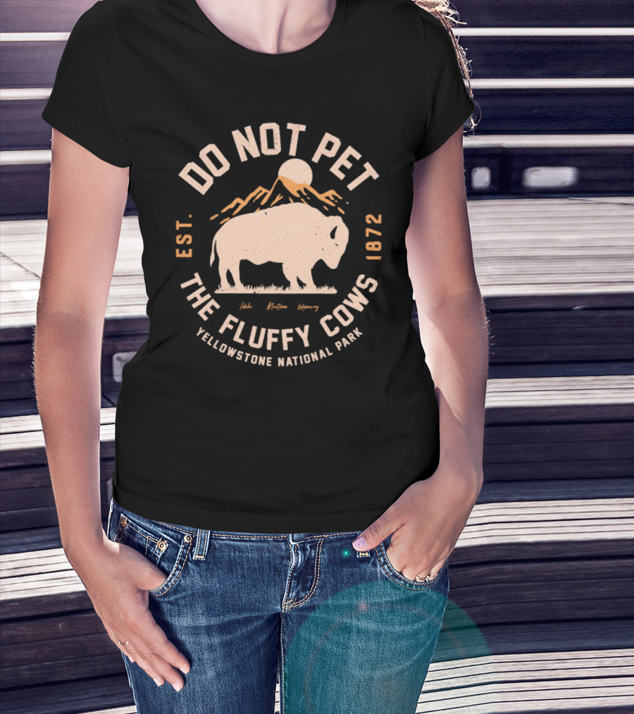 Do Not Pet The Fluffy Cows Yellowstone National Park Est 1872 Idaho Montana Wyoming T-Shirt