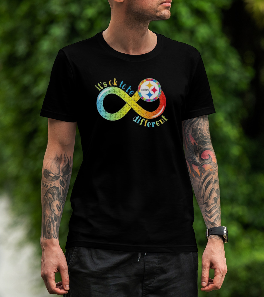 Pittsburgh Steelers Autism Awareness Infinity It's Ok To Be Different Puzzle T-Shirt
