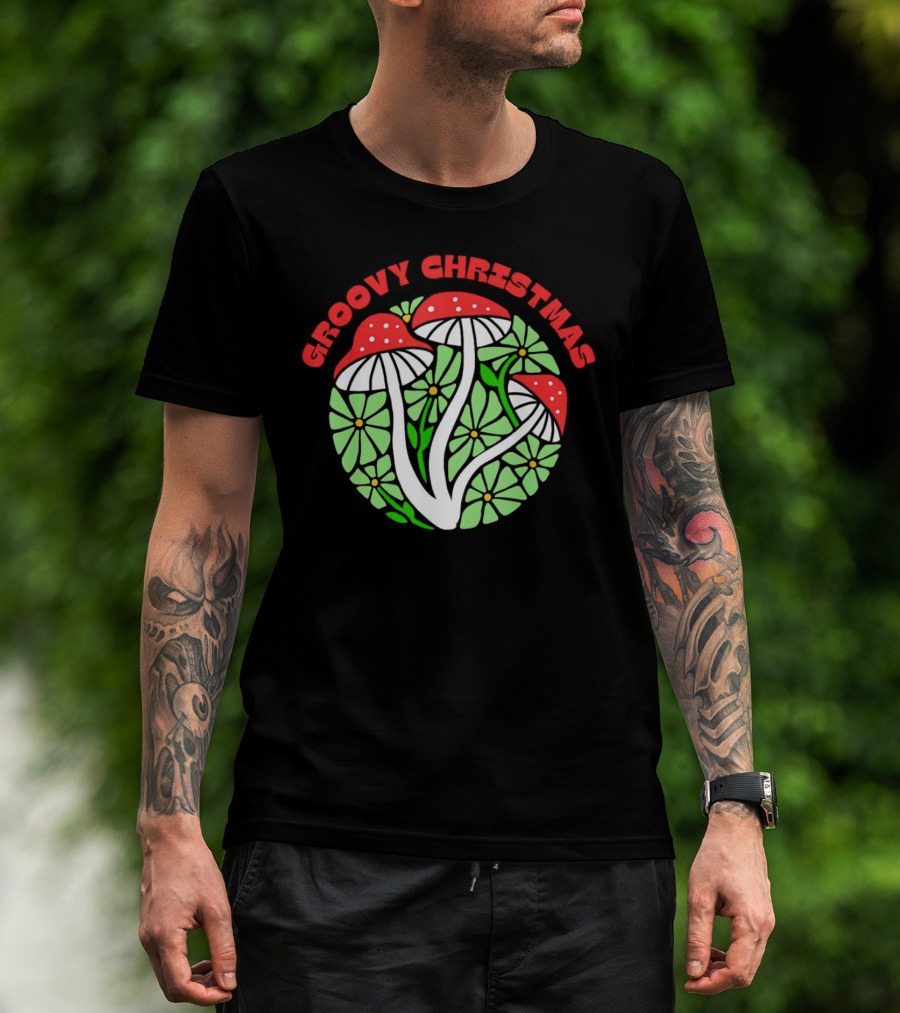 Groovy Christmas Psychedelic Mushrooms And Flowers T-Shirt